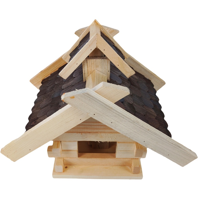 D’accuei » Mangeoire à oiseaux » Mangeoire à oiseaux en bois avec récipient à nourriture
