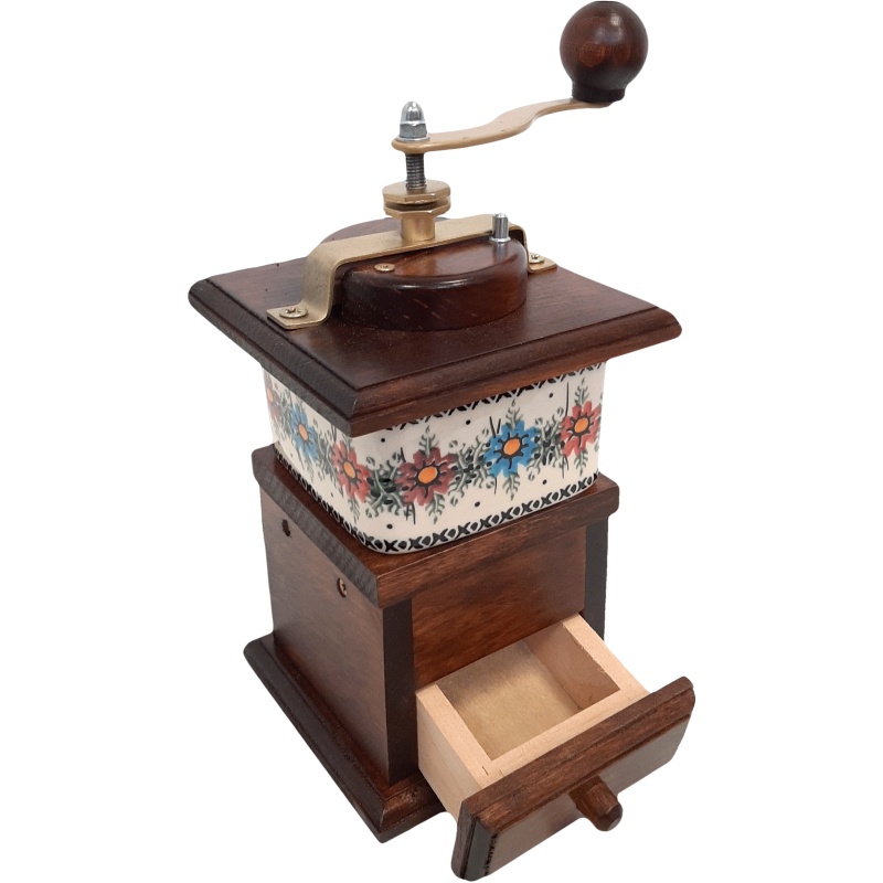 Découvrez la magie de la mouture traditionnelle du café avec cet élégant moulin en bois décoré d'un subtil motif coloré. C'est l'alliance idéale de la fonctionnalité, de la beauté naturelle et des détails artistiques qui égayera n'importe quelle cuisine.