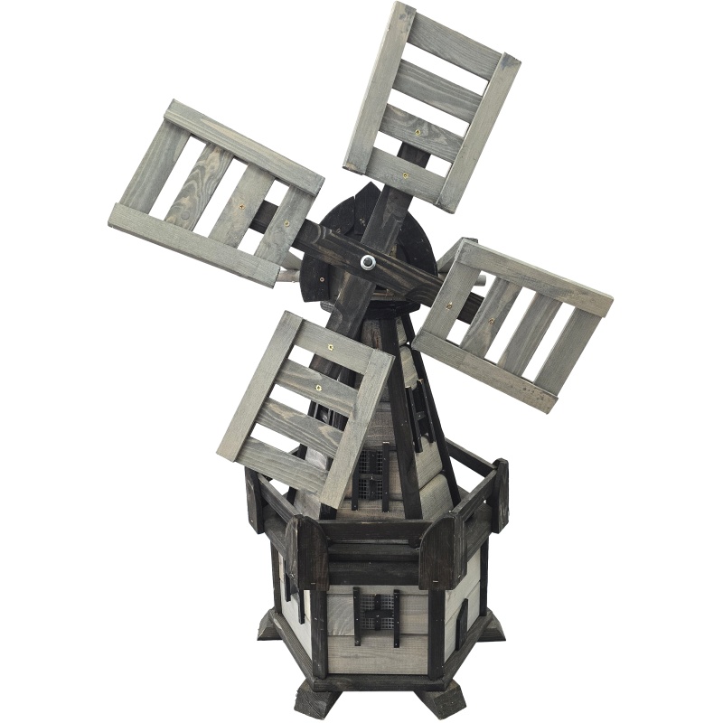 Ce majestueux moulin en bois allie la beauté de l'artisanat traditionnel à l'élégance subtilement mystérieuse des tons sombres. Ses ailes pivotantes captent le vent, tandis que sa structure elle-même symbolise la patience et le cycle éternel. Du haut de ses 100 cm, il constitue un élément de jardin remarquable qui attire délicatement l'attention et ajoute profondeur et caractère à l'espace. Qu'il soit installé près d'un massif de fleurs, d'un bassin ou d'une allée, il deviendra un guide silencieux pour vos moments de jardinage.