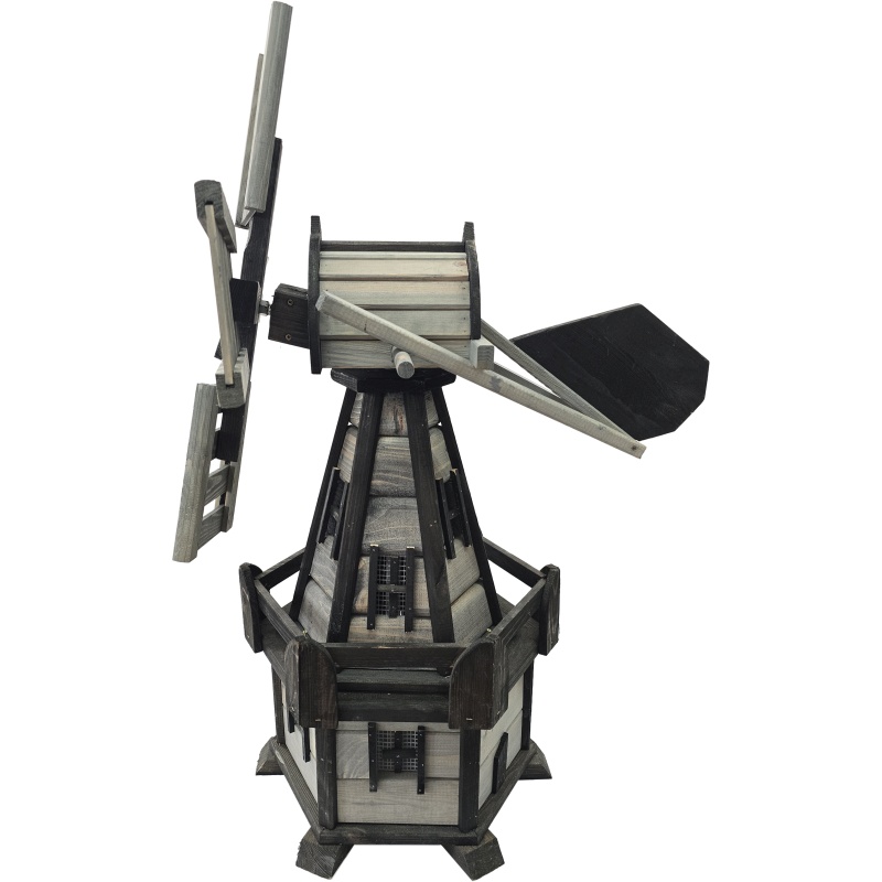 Ailes rotatives qui réagissent au vent – Le mécanisme fonctionnel permet aux ailes du moulin de tourner librement au gré du vent, apportant dynamisme et douceur au jardin.