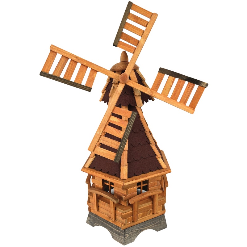• Traitement de surface pour une plus grande durabilité - Le bois est finement poncé et traité en surface avec un revêtement protecteur naturel qui met en valeur ses motifs tout en protégeant le matériau de l'humidité et du soleil. Le moulin ainsi fabriqué est prêt à être utilisé en extérieur toute l'année.