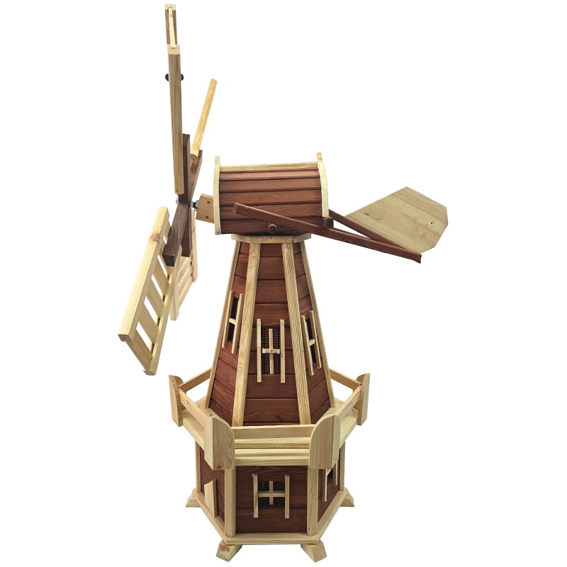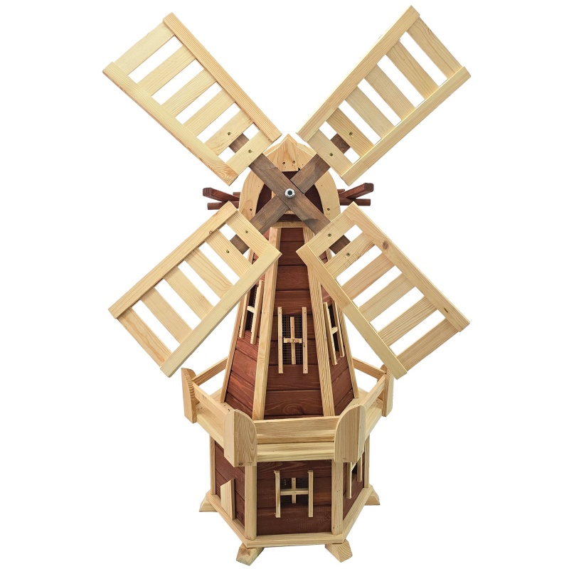 Ce moulin à vent en bois original de 125 cm de haut deviendra l'élément principal de tout jardin. Grâce à sa finition soignée, ses couleurs naturelles et sa structure rotative, il est non seulement esthétique, mais aussi authentique. L'association du bois clair et du bois foncé se démarquera dans tout environnement extérieur et lui confèrera le charme d'une architecture rurale traditionnelle.