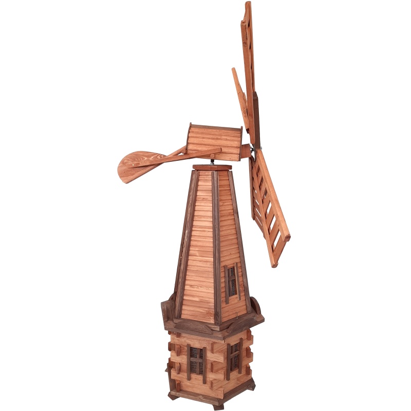 • Base hexagonale stable avec fenêtres décoratives – Sa construction robuste assure une excellente stabilité, même par temps venteux. Les découpes de fenêtres avec cadres en bois et grille de protection confèrent au moulin un aspect réaliste et détaillé.