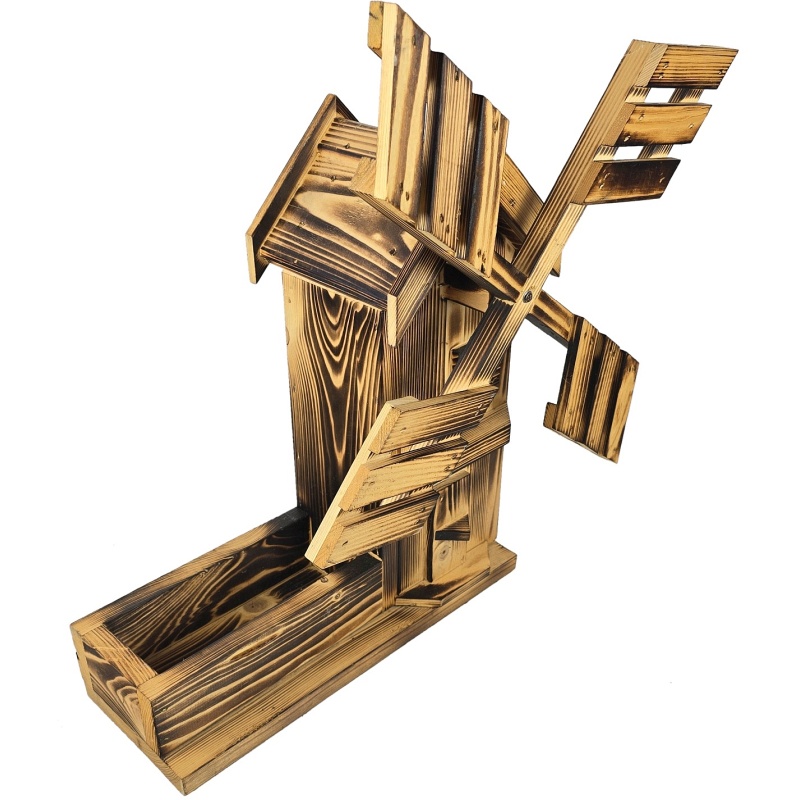 • Un design caractéristique à l'impact visuel puissant : Ses ailes distinctives, sa forme de moulin à vent classique et sa surface brûlée créent une atmosphère authentique et agréable à l'œil. Ce moulin est un élément historique qui s'intègre aussi bien dans les jardins modernes que traditionnels.
