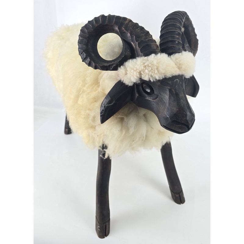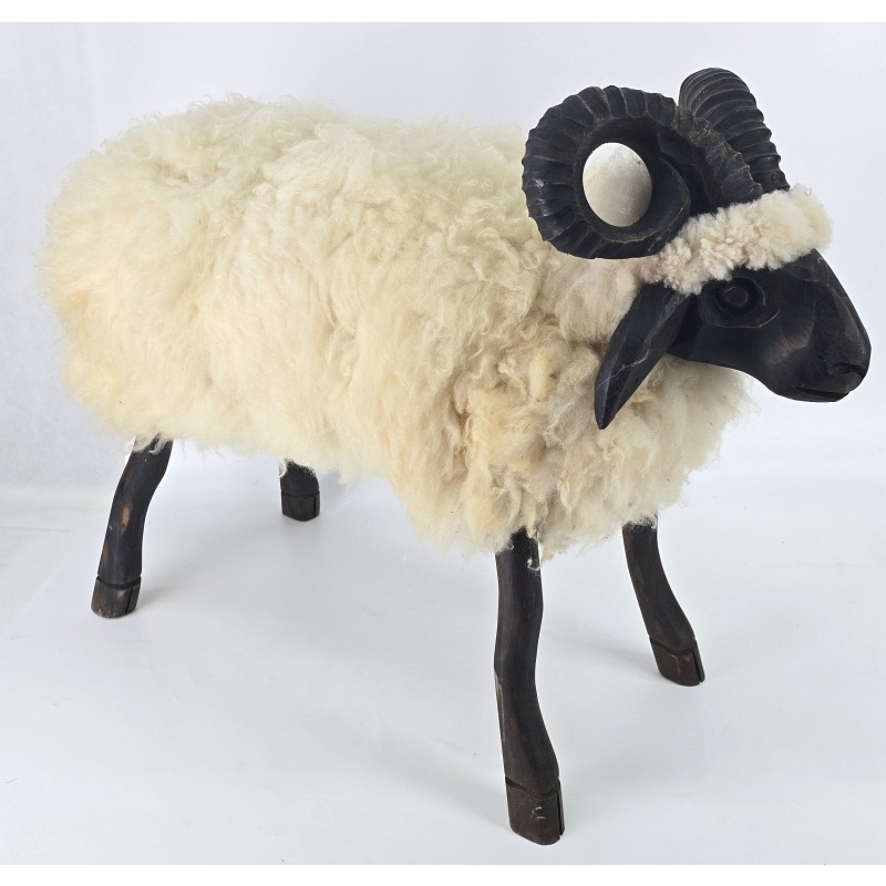 Ce magnifique mouton décoratif grandeur nature (80 x 35 x 55 cm) est une pièce d'artisanat exceptionnelle alliant matériaux naturels, expression traditionnelle et esthétique ludique. Son corps est recouvert d'une véritable toison de mouton, à la densité, à la douceur et à la structure authentiques qui le caractérisent. La tête, les cornes et les pattes sont sculptées dans du bois massif de haute qualité, contrastant avec la douceur de la toison et soulignant le réalisme de l'animal. Ce mouton est non seulement esthétique, mais aussi d'une excellente facture, stable et prêt à décorer n'importe quel espace, du chalet à l'intérieur moderne.
