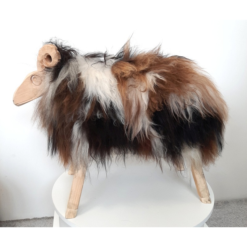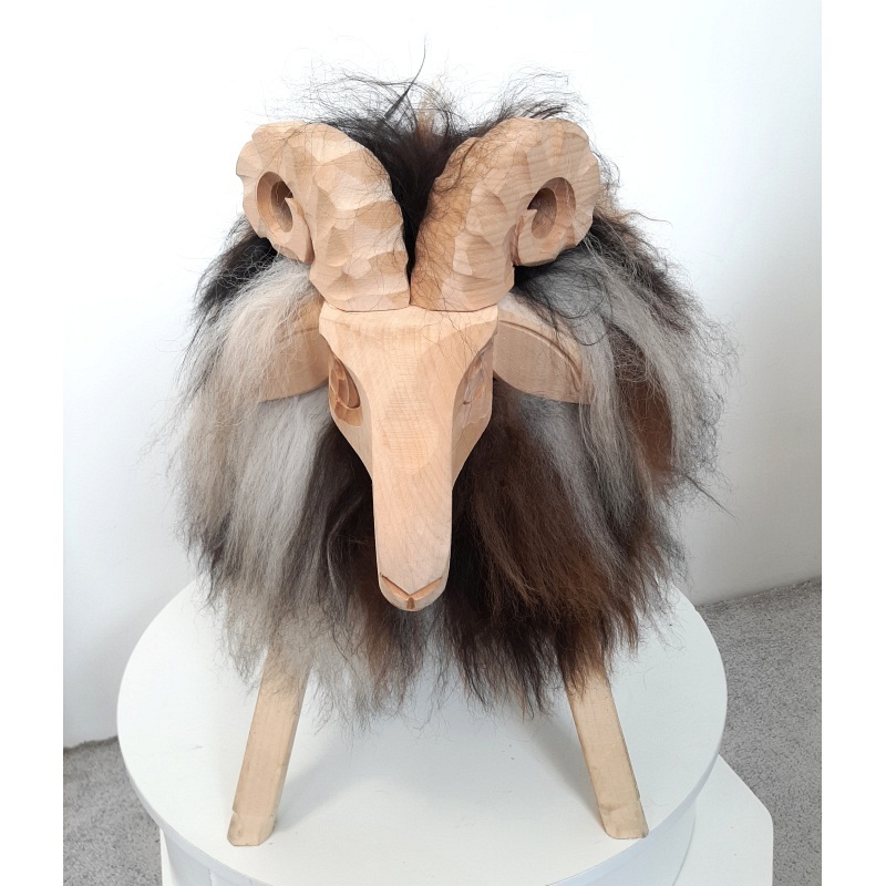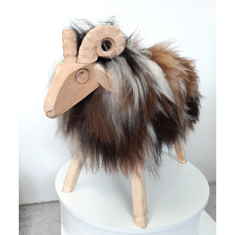 • Aspect rustique authentique avec des détails distinctifs – Le bois est travaillé avec précision, mettant l'accent sur la forme de la tête, des yeux et des cornes. La toison, déclinée en différentes teintes, est à la fois réaliste et décorative.