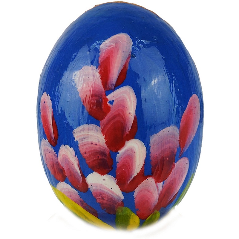 Cet œuf de Pâques exceptionnel se distingue par sa couleur bleue vibrante et son motif contrastant rouge-rose rappelant des pétales de fleurs ou des brindilles en fleurs. Chaque coup de pinceau a été soigneusement réalisé, privilégiant l'originalité...