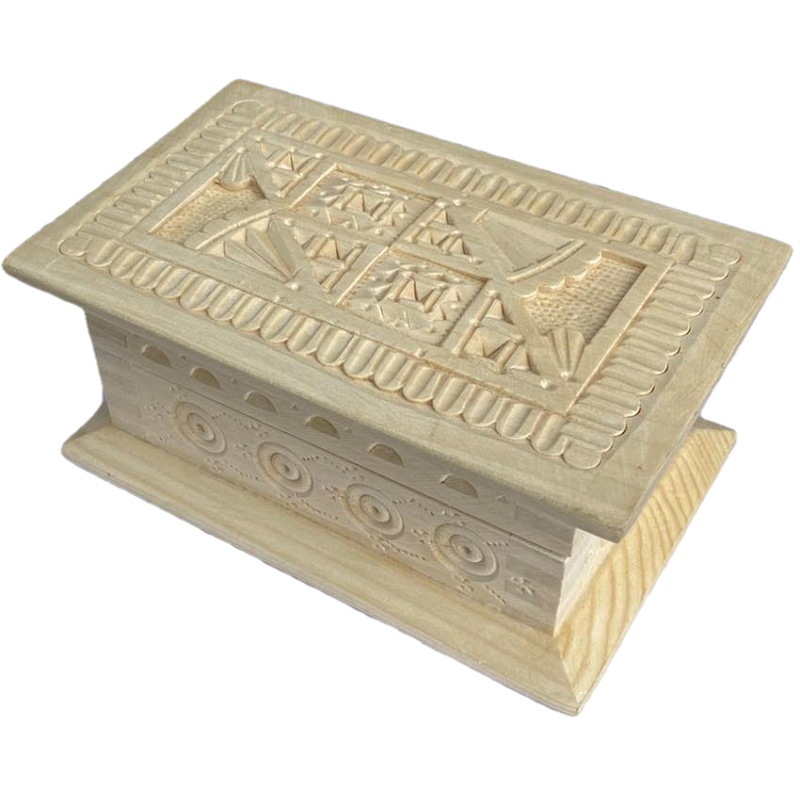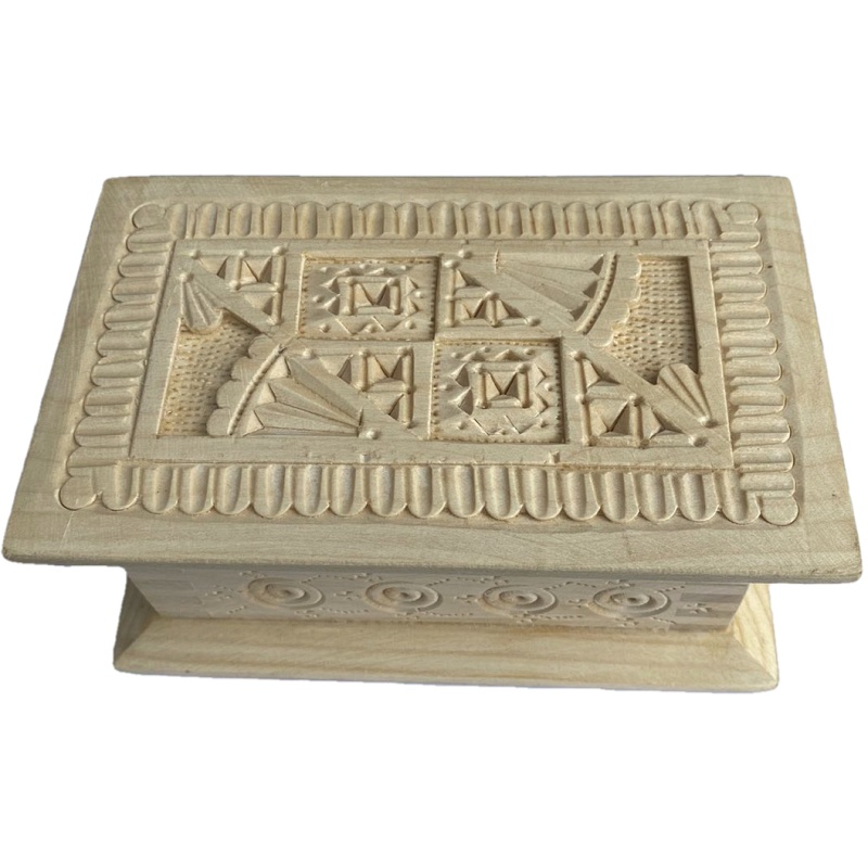 Apportez une touche de tradition folklorique et d'artisanat slovaques à votre intérieur avec cette petite boîte à bijoux en bois, qui vous enchantera par ses ornements précis sculptés à la main. Ses dimensions compactes sont idéales pour une étagère ou une table de chevet. Sa finition soignée et son bois durable garantissent la sécurité de vos objets de valeur.