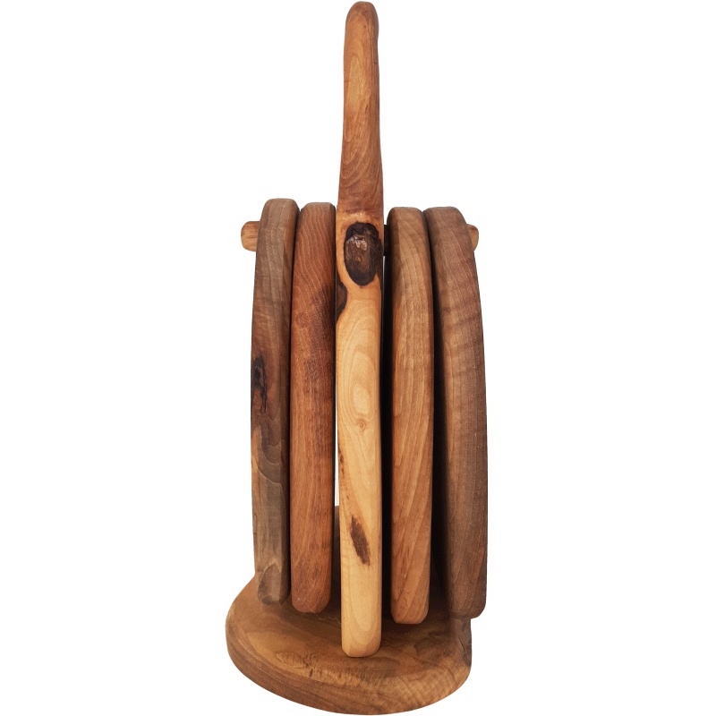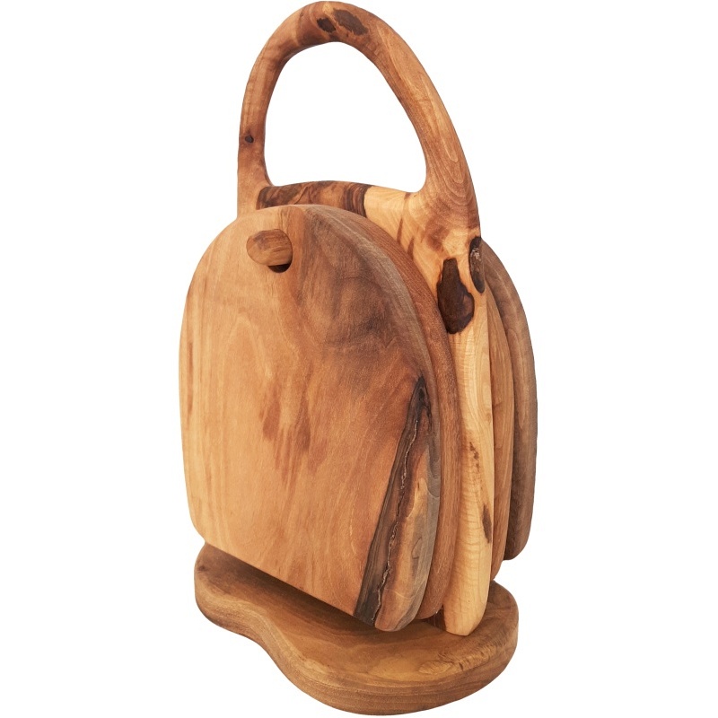 Cet ensemble de planches en bois avec support est plus que pratique : il apporte authenticité artisanale, fonctionnalité et esthétique à votre cuisine. Chaque pièce de bois raconte une histoire et deviendra à la fois un accessoire du quotidien et un élément de décoration.