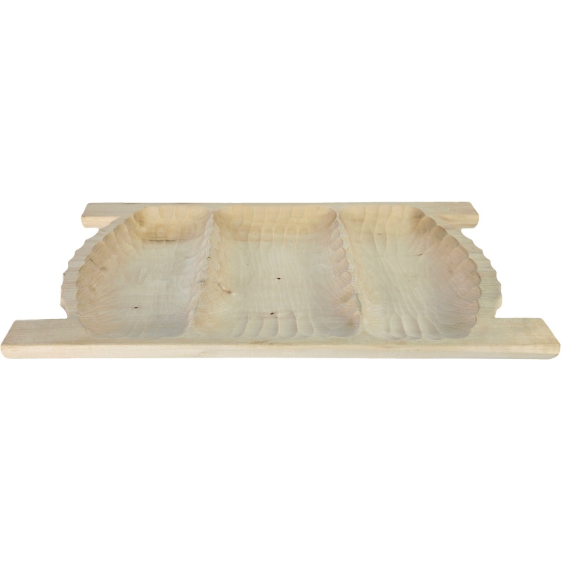 Cet impressionnant plateau en bois de 90 cm allie beauté naturelle, fonctionnalité et savoir-faire artisanal. Fabriqué en bois dur de haute qualité, avec ses trois compartiments sculptés et son motif rustique distinctif, il s'intègre parfaitement aux intérieurs traditionnels et modernes. Chaque pièce est une création originale qui apportera chaleur et naturel à votre intérieur.