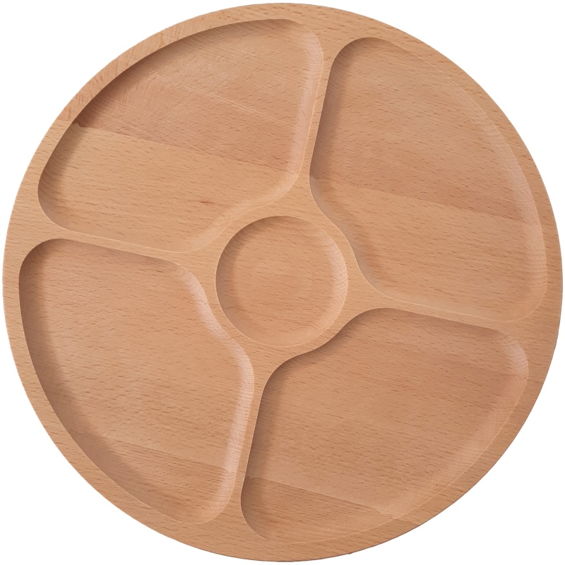 • Division pratique en cinq compartiments – Quatre grandes sections séparées et un compartiment central permettent de servir différents types d'en-cas, sauces, dips, fruits ou fromages.
