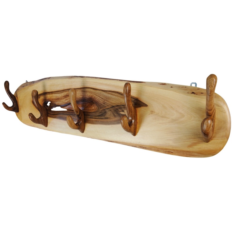 • Crochets en bois fabriqués à la main – Ces cinq crochets robustes sont conçus avec précision pour offrir suffisamment d'espace pour suspendre manteaux, vestes, sacs ou accessoires, tout en conservant une esthétique soignée.