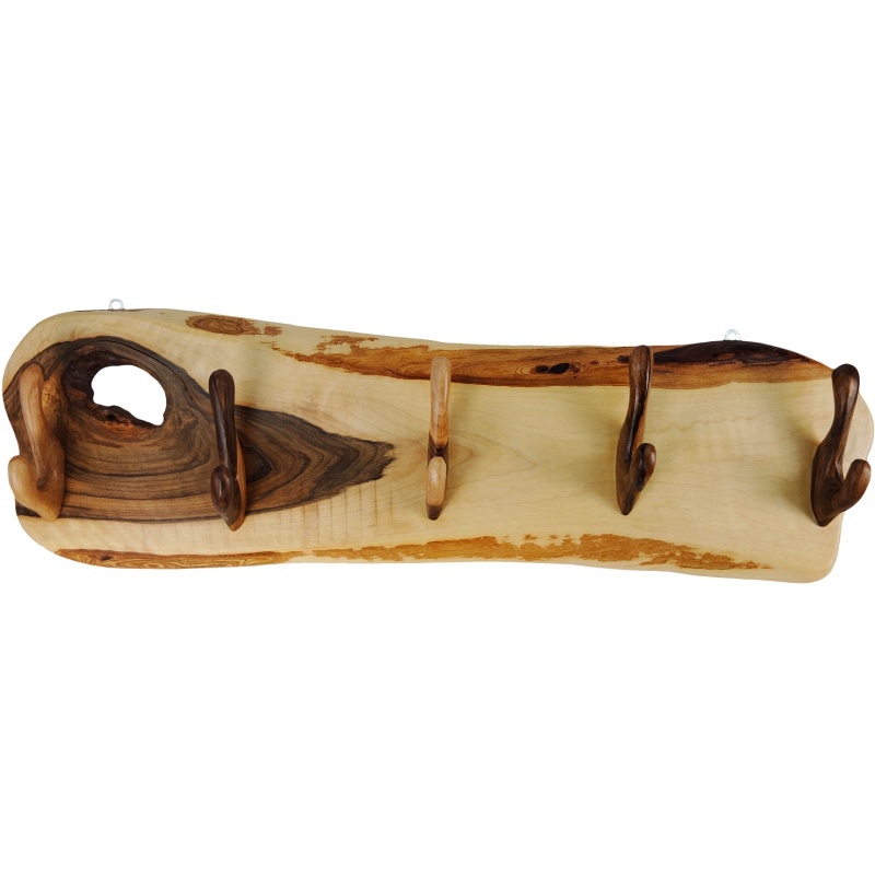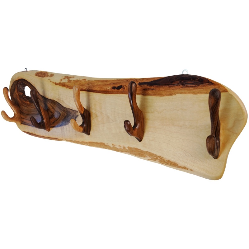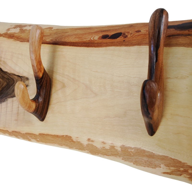 • Crochets sculptés à la main dans le même bois - Ces cinq crochets robustes sont soigneusement façonnés pour une utilisation fiable. Chacun possède son propre caractère, tout comme la planche elle-même.