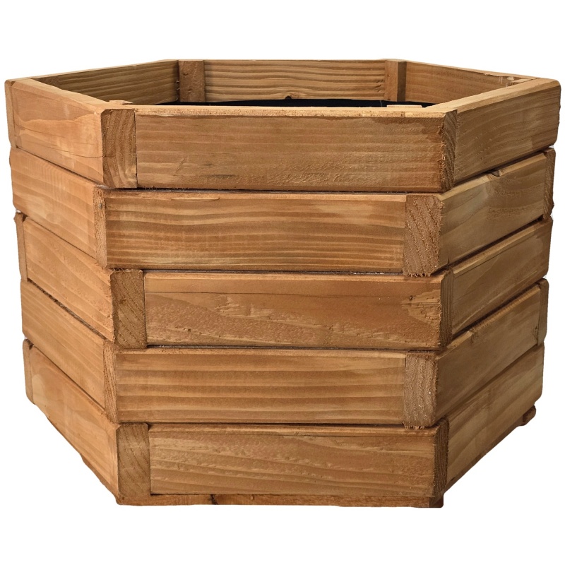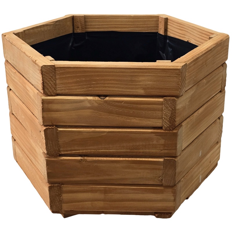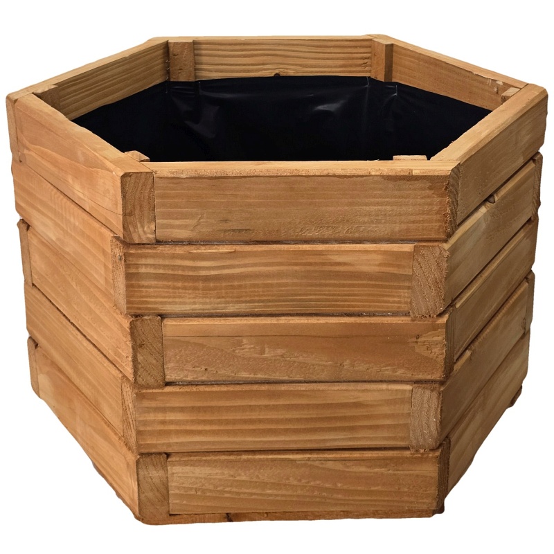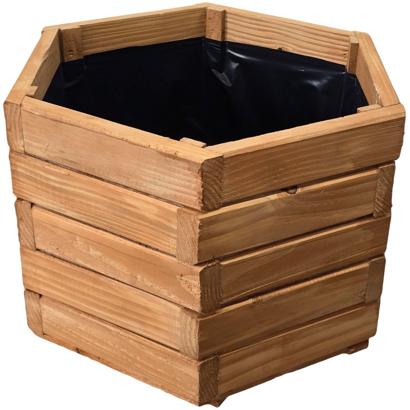 Ce pot de fleurs hexagonal en bois allie à merveille design naturel, praticité et savoir-faire artisanal. Fabriqué en bois massif au motif prononcé et aux lattes solidement assemblées, il forme un ensemble harmonieux et robuste. Grâce à son revêtement intérieur en film noir, il est protégé de l'humidité et prêt à l'emploi, sans traitement supplémentaire. Sa forme géométrique est visuellement attrayante, tandis que sa disposition hexagonale permet de combiner plusieurs pièces pour créer de jolis ensembles ou mosaïques.