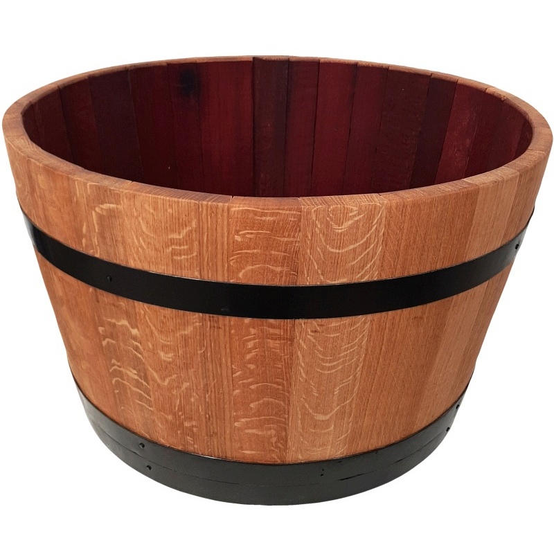 Ce contenant en chêne se distingue non seulement par sa robustesse, mais aussi par son esthétique remarquable, alliant une base rustique à des détails modernes. Il est fabriqué en bois de fût de haute qualité, autrefois utilisé pour conserver le vin, comme en témoigne la couleur bordeaux profond de l'intérieur. Deux élégants cerceaux métalliques noirs, situés sur le pourtour, assurent stabilité et solidité, tout en créant un contraste saisissant avec la teinte chaleureuse du chêne. Cet élément décoratif attirera tous les regards et offrira d'excellentes conditions pour la plantation.