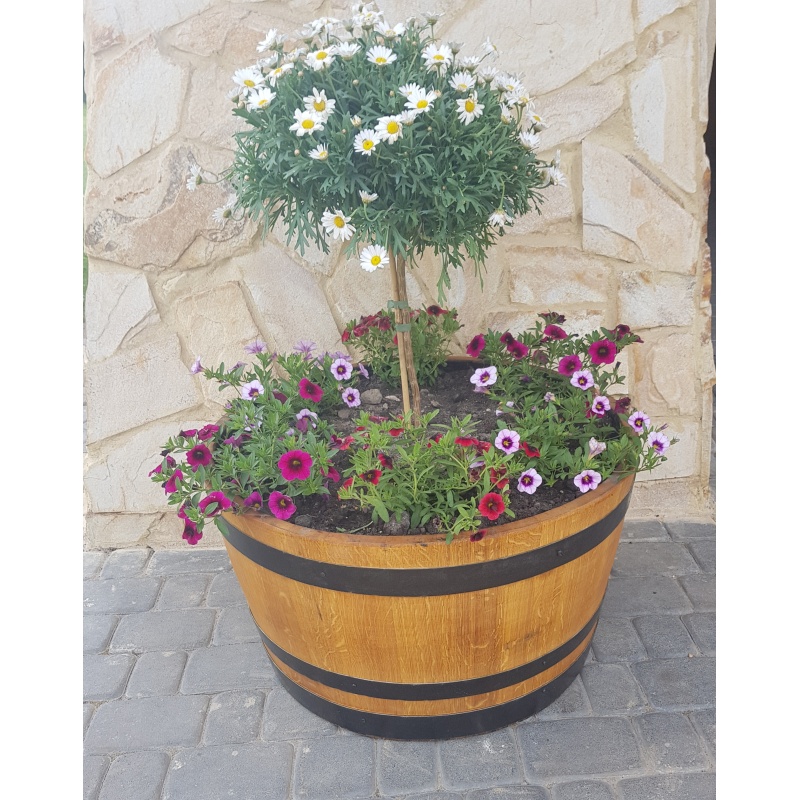Jardinière fabriquée à partir d'un tonneau à vin en chêne usagé (225 l)