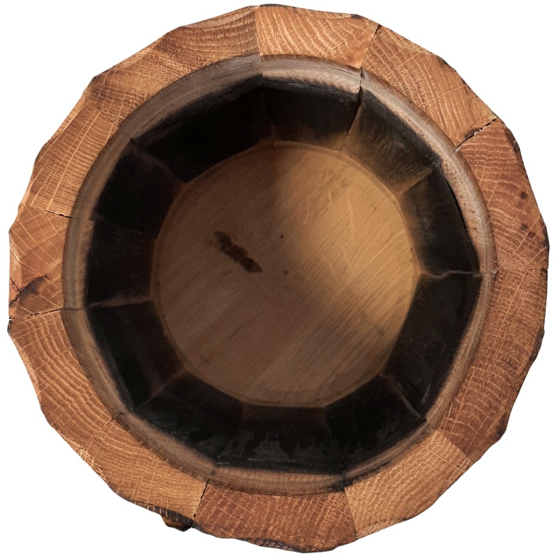 • Forme authentique inspirée du tonneau d'origine – Les bords supérieurs irréguliers, les fines traces de travail et la structure du bois créent l'impression d'une œuvre artisanale pleine d'âme.
