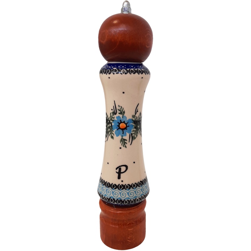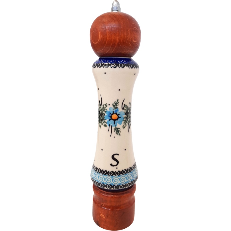 • Décor peint à la main avec une touche folklorique - Chaque moulin est décoré d'un motif floral original dans des tons bleu-vert, ce qui lui confère un aspect unique.