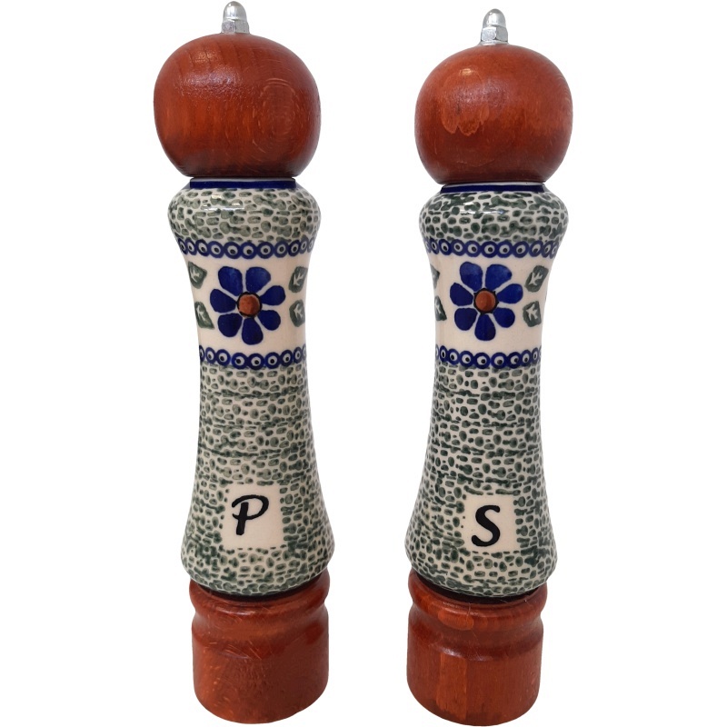 Découvrez le charme de la cuisine traditionnelle avec cet ensemble de moulins à sel et à poivre décorés à la main. L'association d'une céramique finement décorée, de détails en bois et d'un motif floral allie esthétique et praticité au quotidien à votre cuisine.
