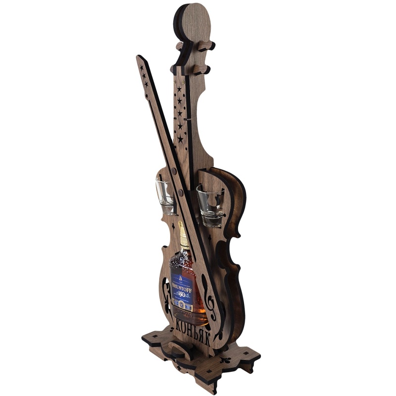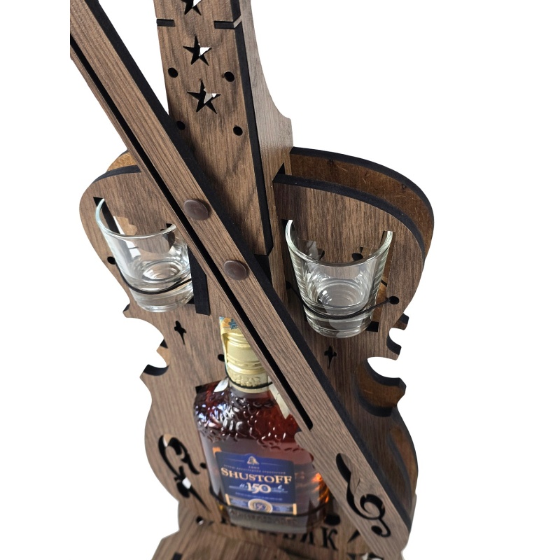 Cet élégant présentoir en bois en forme de violon est non seulement un support pratique pour bouteilles et verres, mais aussi un élément de design original qui attirera immédiatement le regard. Ses détails sculptés avec précision, ses couleurs contrastées et sa fabrication unique en font un cadeau idéal et une décoration exceptionnelle.