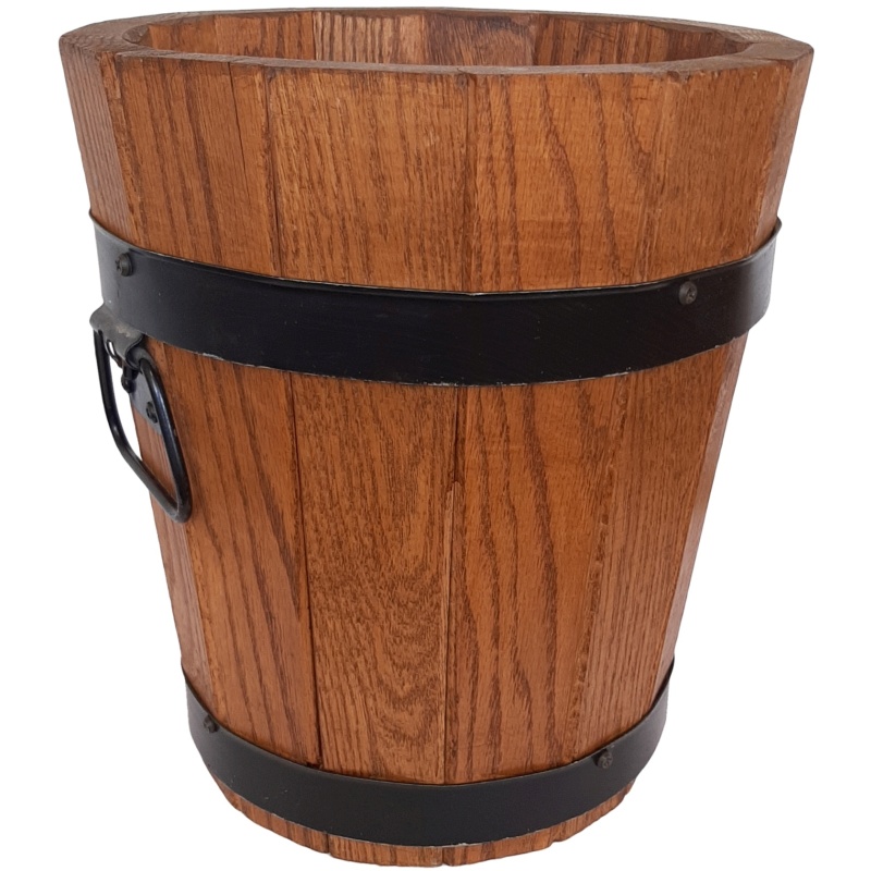 • Une fabrication esthétique soignée et une attention aux détails – La forme traditionnelle du tonneau, associée au veinage naturel du bois et aux détails en métal noir, fait de ce conteneur un élément de design distinctif au charme intemporel.