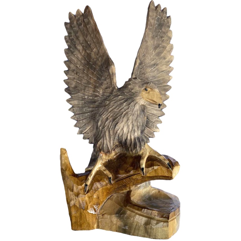 D’accuei » Décorations en bois » Statue d'aigle en bois 37 x 22 cm