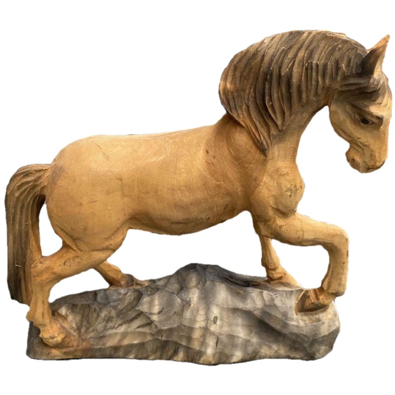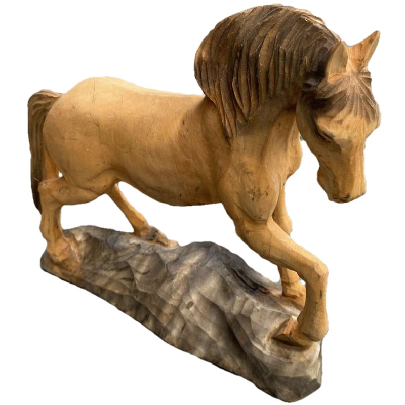 D’accuei » Décorations en bois » Statue de cheval sculptée à la main