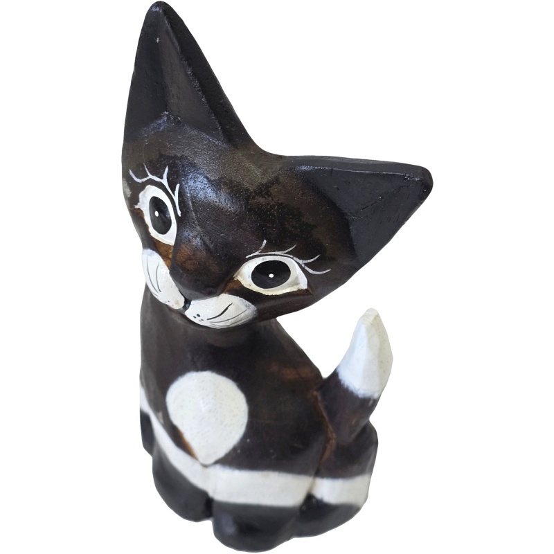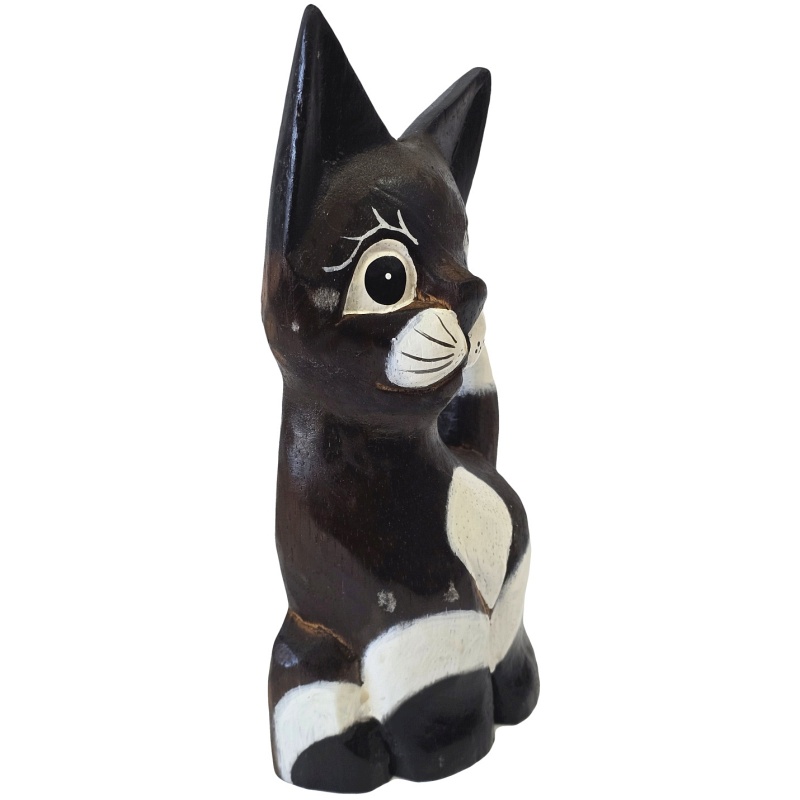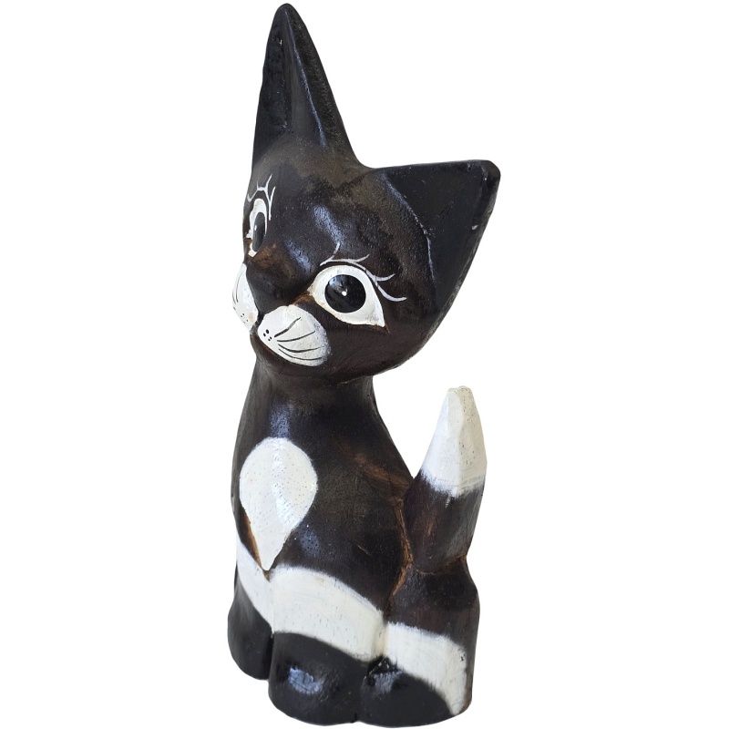 La sculpture en bois « chat » est une œuvre d'art charmante qui combine un design ludique, une fabrication artisanale traditionnelle et une combinaison de couleurs distinctive. Cet adorable chat en bois séduira non seulement les amoureux des animaux, mais aussi tous ceux qui recherchent une décoration originale, empreinte d'exotisme et de gaieté.
