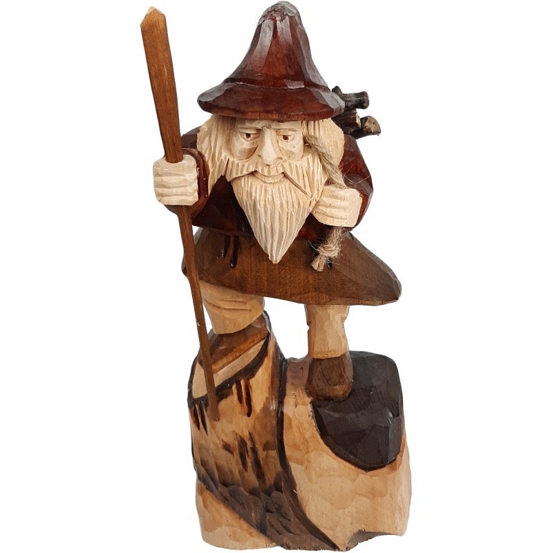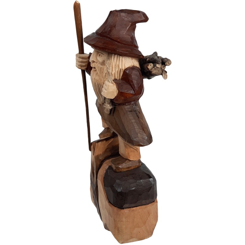 • Finition soignée et contraste naturel – Une barbe distinctive, un chapeau pointu, une canne et un sac à dos sur l'épaule – chaque élément est travaillé avec précision et mis en valeur par une légère teinture.