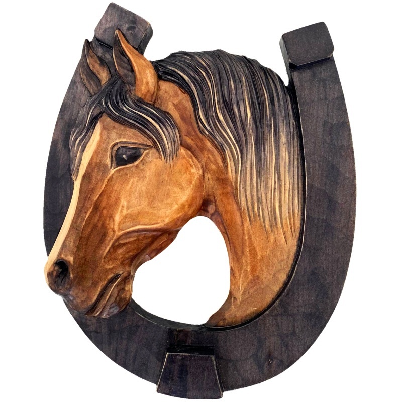 D’accuei » Peintures sculptées à la main » Tête de cheval - fer à cheval (moyen)