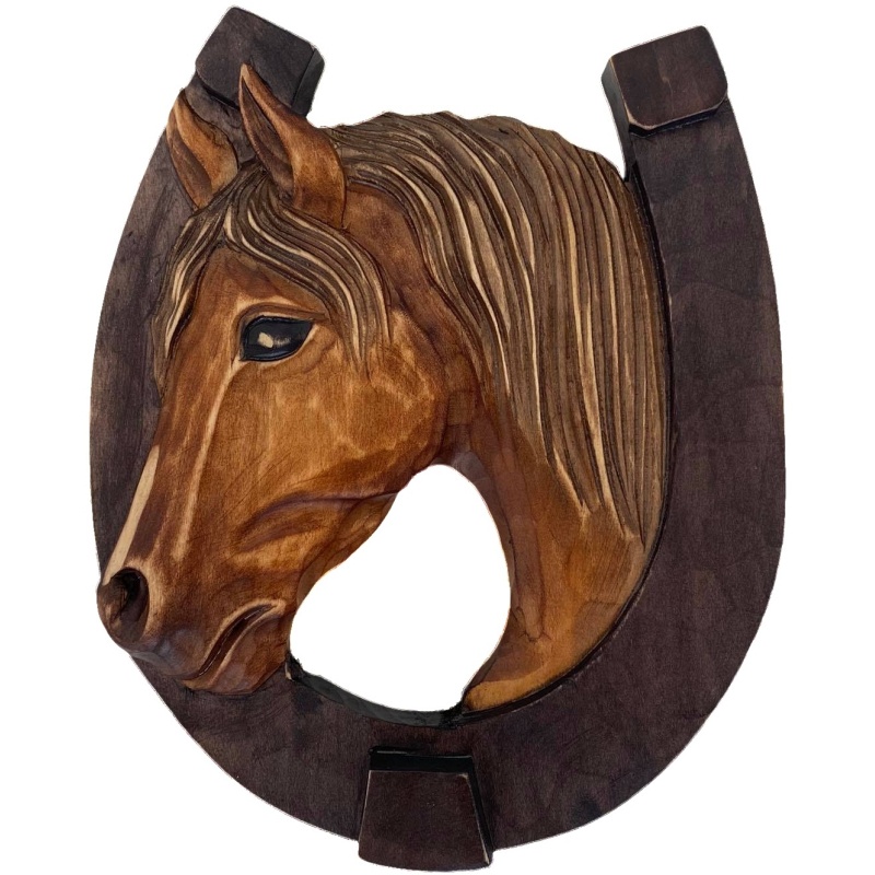 D’accuei » Peintures sculptées à la main » Tête de cheval - fer à cheval (petit)