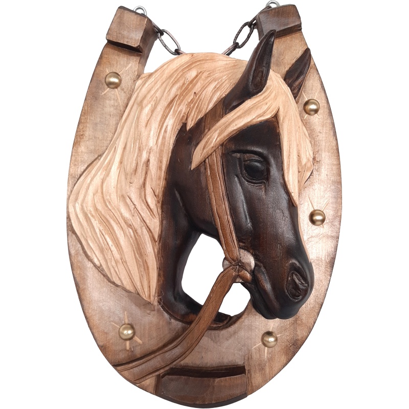 D’accuei » Peintures sculptées à la main » Tête de cheval fer à cheval, tableau à accrocher avec chaîne