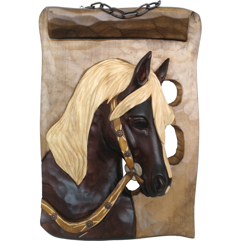 D’accuei » Peintures sculptées à la main » Tête de cheval, tableau à accrocher avec chaîne