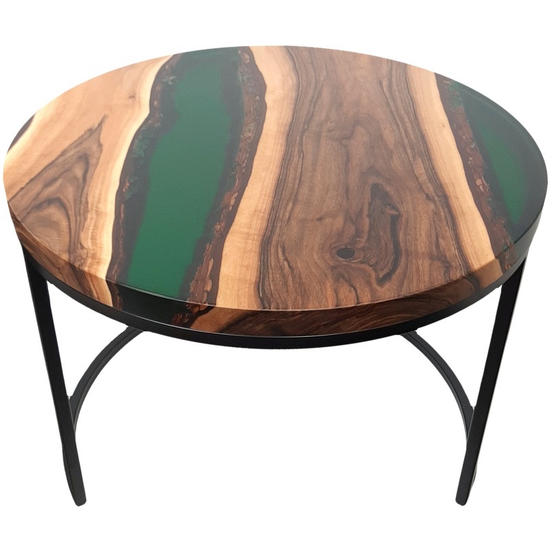 D’accuei » Meubles en tonneau de chêne » Table en bois de noyer avec plateau en métal