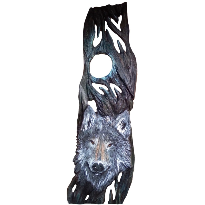 D’accuei » Peintures sculptées à la main » Tableau en bois Loup H
