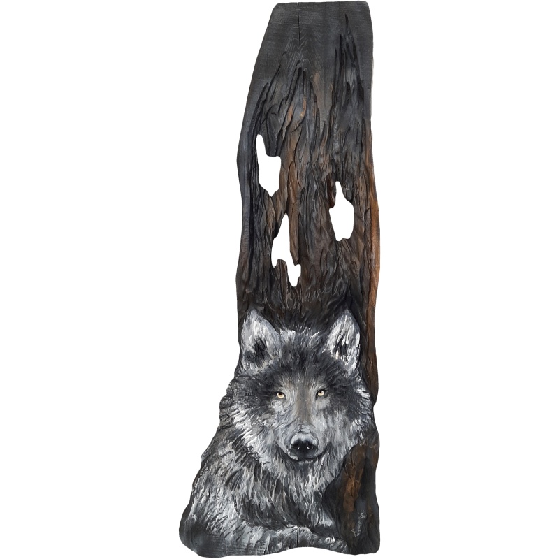 D’accuei » Peintures sculptées à la main » Tableau en bois Loup
