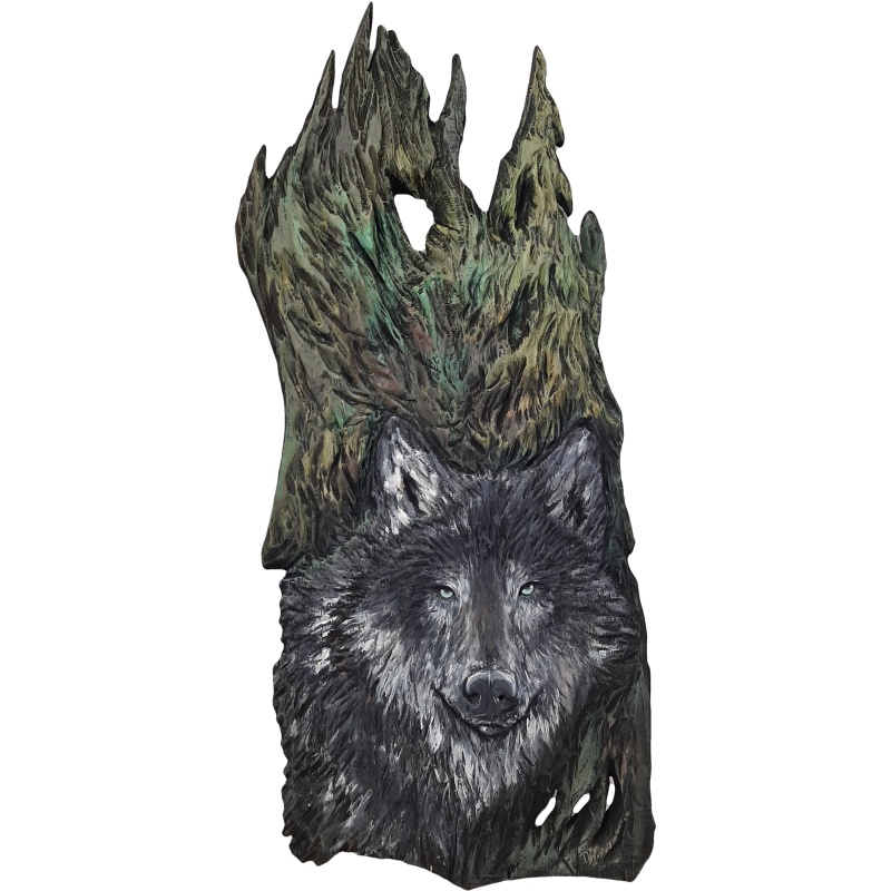 D’accuei » Peintures sculptées à la main » Tableau en bois Loup