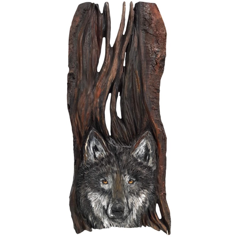 D’accuei » Peintures sculptées à la main » Tableau en bois Loup