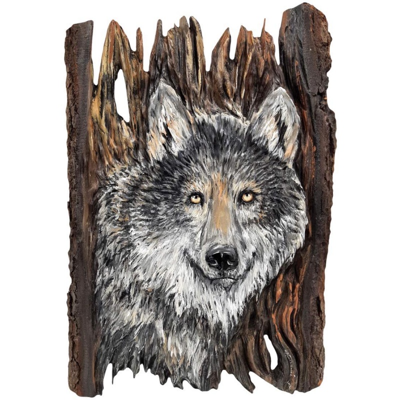D’accuei » Peintures sculptées à la main » Tableau en bois Loup