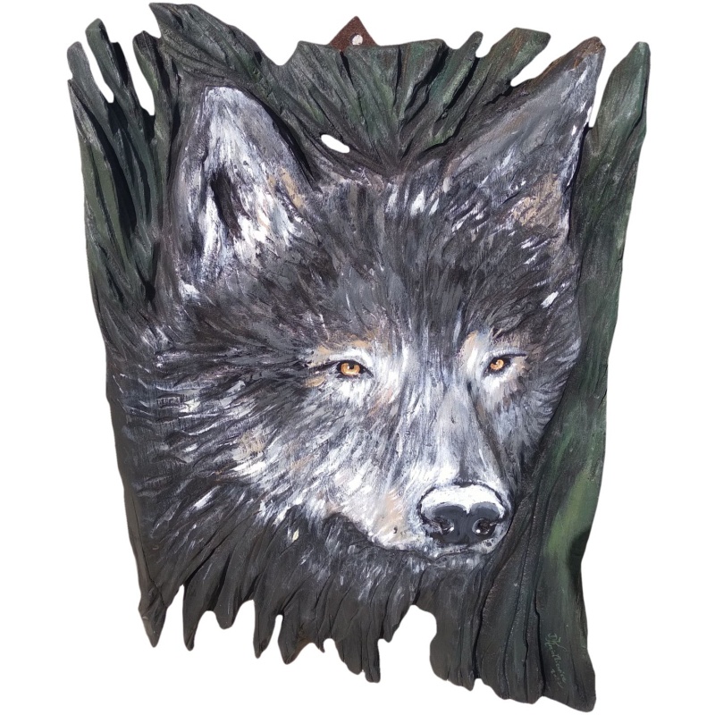 D’accuei » Peintures sculptées à la main » Tableau en bois Loup