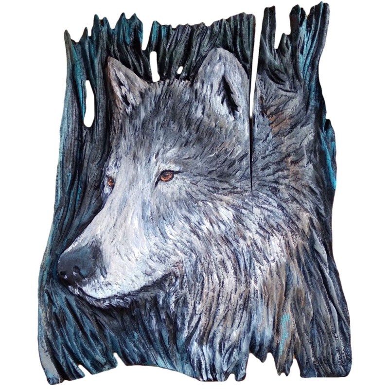 D’accuei » Peintures sculptées à la main » Tableau en bois Loup