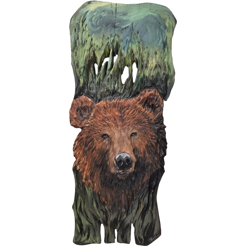D’accuei » Peintures sculptées à la main » Tableau en bois Ours