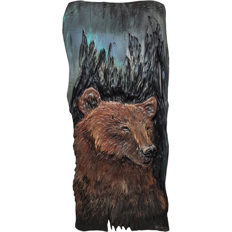 D’accuei » Peintures sculptées à la main » Tableau en bois Ours