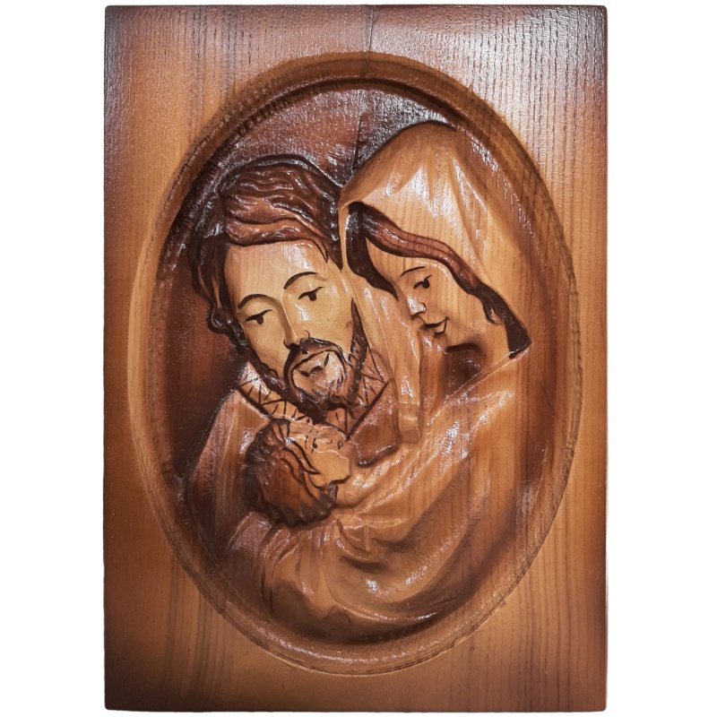 D’accuei » Peintures sculptées à la main » Tableau en bois de la Sainte Famille 18 x 25 cm