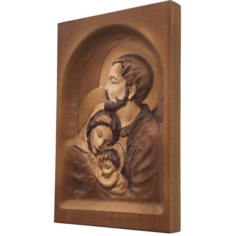 D’accuei » Peintures sculptées à la main » Tableau en bois de la Sainte Famille 19 x 13 cm