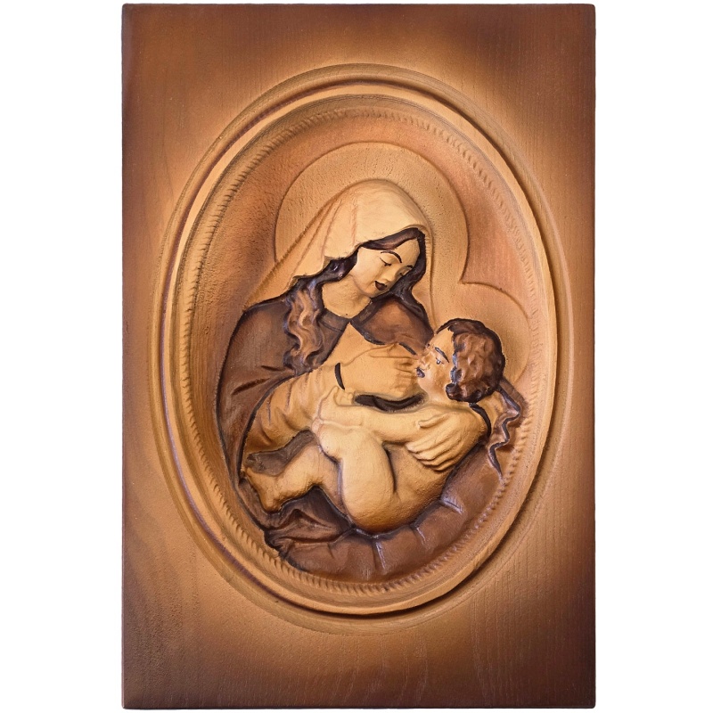 D’accuei » Peintures sculptées à la main » Tableau en bois de la Vierge Marie avec l'Enfant Jésus 25 x 36 cm