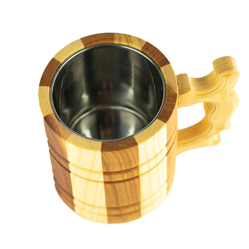 D’accuei » Tasses en bois » Tasse en bois faite à la main 0,5 L avec intérieur en acier inoxydable