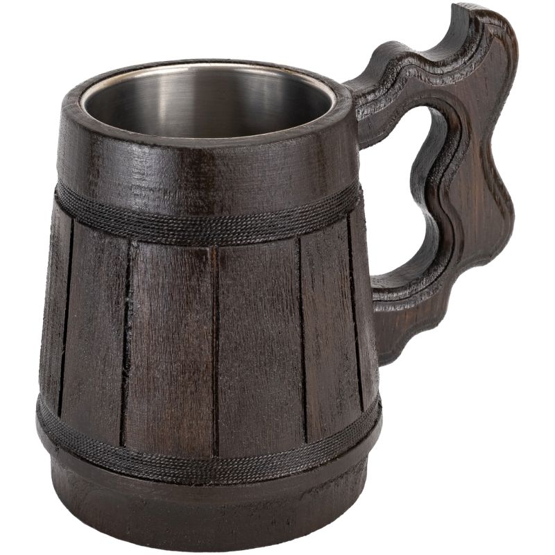Ce gobelet en bois élégant et robuste de 0,3 litre allie savoir-faire traditionnel et design fonctionnel. Son bois foncé, travaillé avec soin, lui confère un aspect rustique et un caractère naturel qui s'intègrera parfaitement à tous les intérieurs, du cottage au moderne. Les anneaux décoratifs en tissu noir accentuent sa forme et rappellent les fûts de bière classiques, lui conférant un aspect authentique et exceptionnel. L'insert en acier inoxydable à l'intérieur du verre garantit un nettoyage facile, une sécurité sanitaire et une longue durée de vie grâce à une utilisation régulière.
