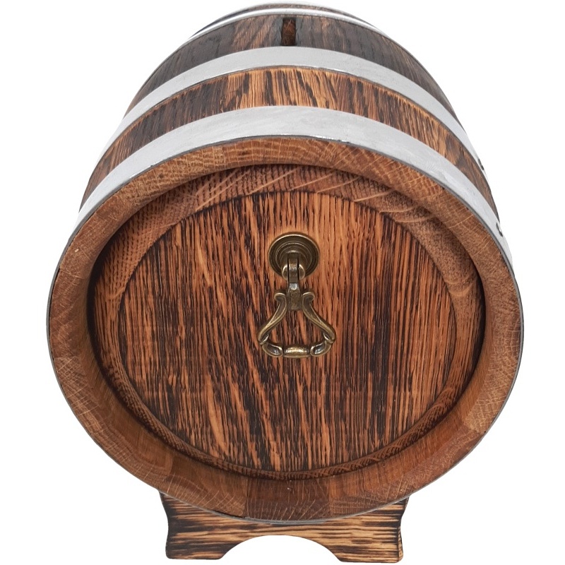• Bois de chêne massif - Durabilité et caractère - Le tonneau est fabriqué en bois de chêne de haute qualité, reconnu pour sa résistance et sa durabilité. La teinture foncée au veinage naturel du bois confère au produit un aspect rustique et souligne son origine naturelle.