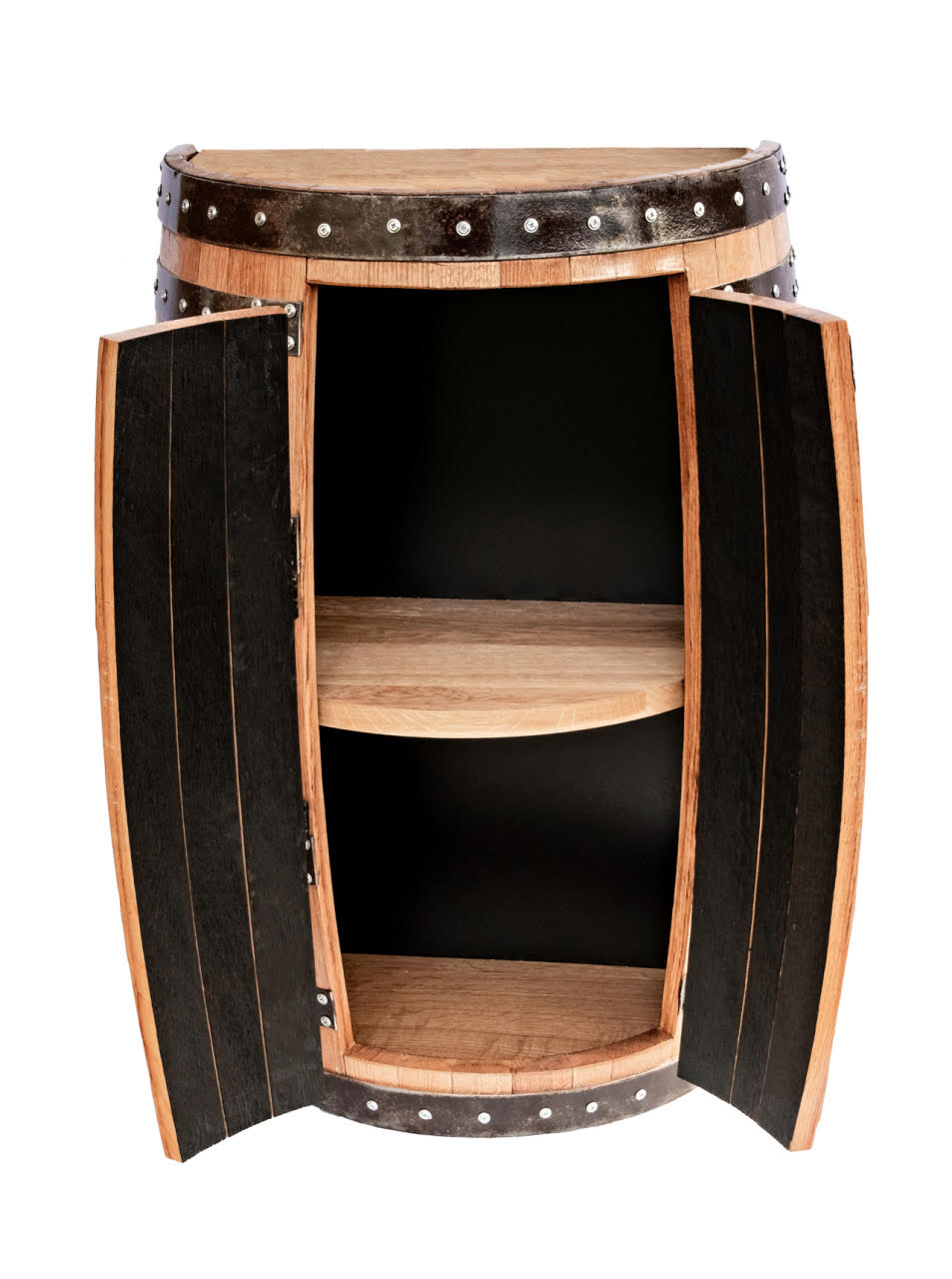 D’accuei » Meubles en tonneau de chêne » Tonneau 1/2 - Barik à deux portes, avec étagère